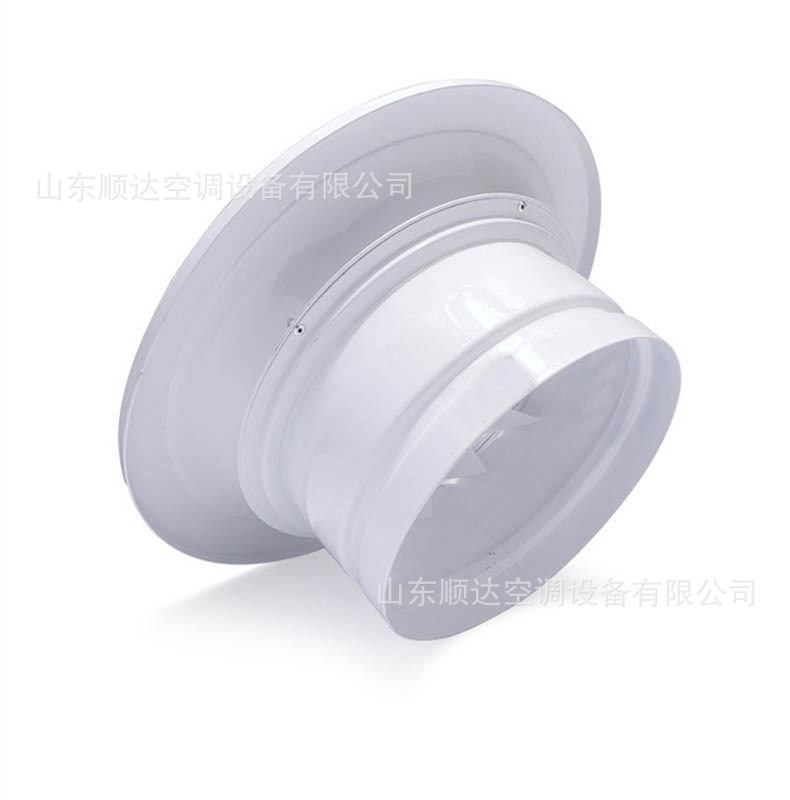 旋流風口是空調系統中的一個排風工具。在空調通風系統中可用作大風量,大溫差送風以減少風口數量,安裝在天花板或頂棚上,可用于3米以內低空間,也可用二種高度大面積送風,高度甚至可達10米以上。 旋流風口送出旋轉射流,具有誘導比大,風速衰減快的特點。 ■材質:不銹鋼,鋼板,鋁合金 ■規格尺寸:支持定制,配合設計尺寸