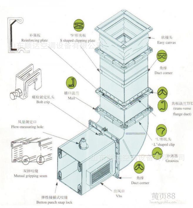產品多用于大型商場,寫字樓,地鐵站,大型超市,現代化工廠的消防排煙送風,空調通風,排塵通風等。本公司生產工藝先進,產品質量優良。產品成品表面平直,外形標準美觀,為施工現場安裝方便、快捷打下了良好的基矗共板式法蘭風管又稱無法蘭風管,其制作形式比傳統的矩形風管加工速度更快捷、更方便、更小的漏風率。