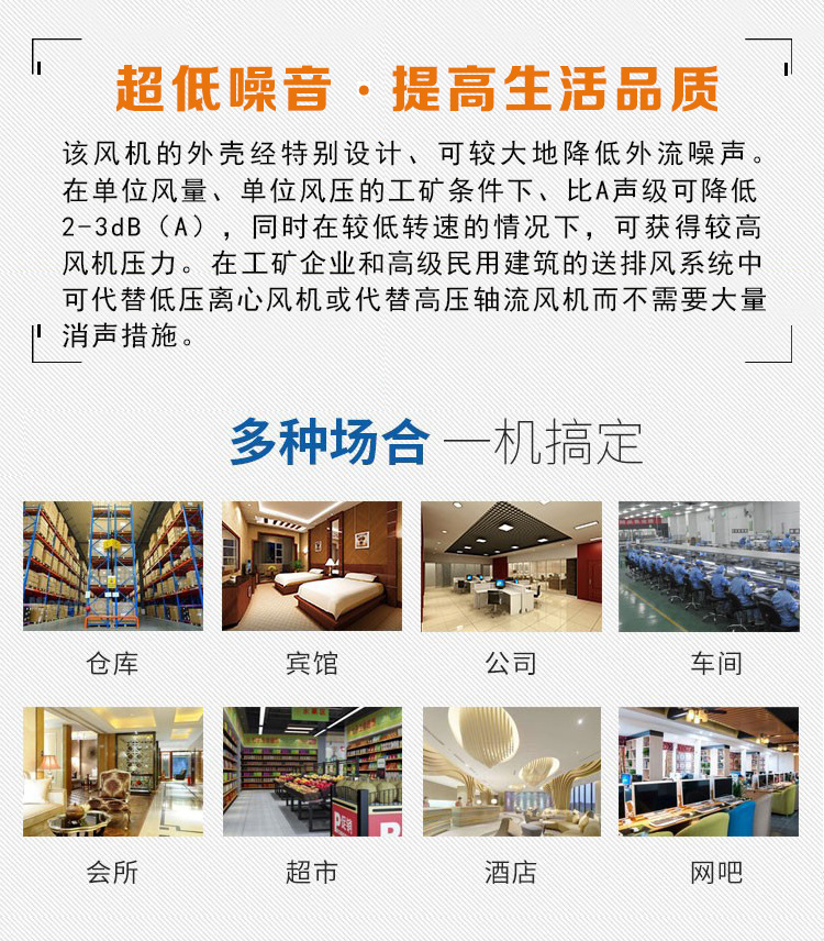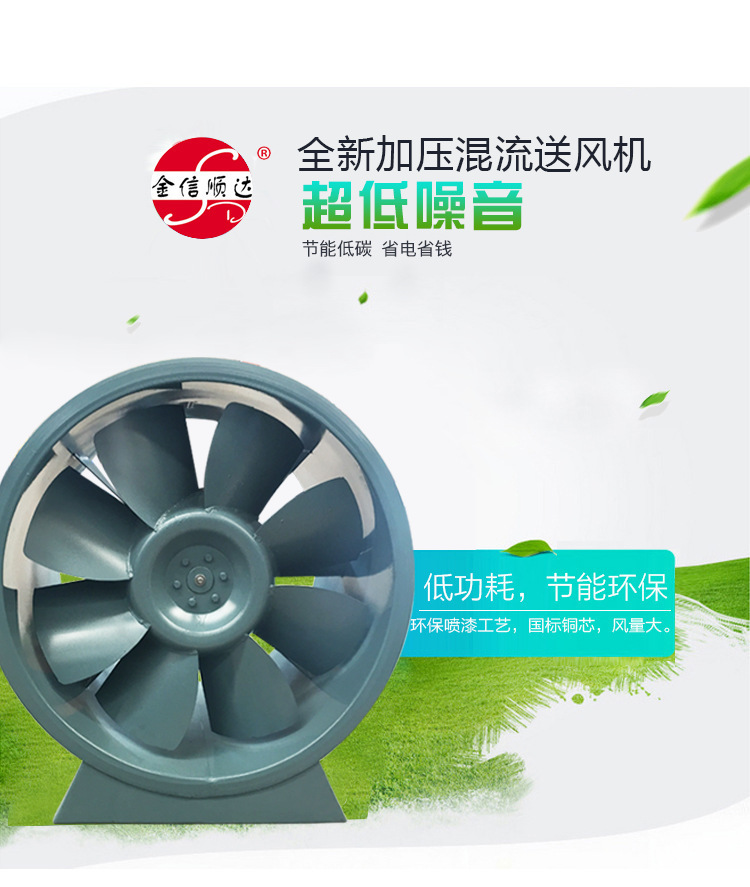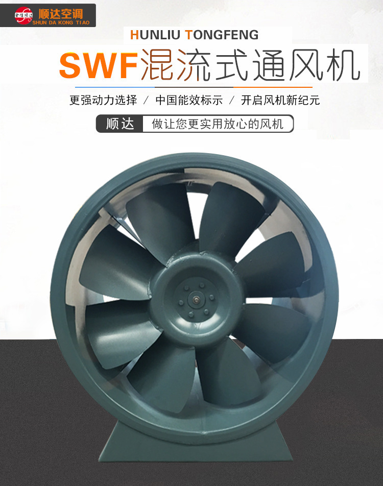 混流(斜流)風(fēng)機(jī),風(fēng)壓系數(shù)比軸流風(fēng)機(jī)高,流量系數(shù)比離心風(fēng)機(jī)大,用在風(fēng)壓和流量都“不大不小”的場(chǎng)合。它填補(bǔ)了軸流風(fēng)機(jī)和離心風(fēng)機(jī)之間的空白。同時(shí)具備安裝簡(jiǎn)單方便的特點(diǎn)。